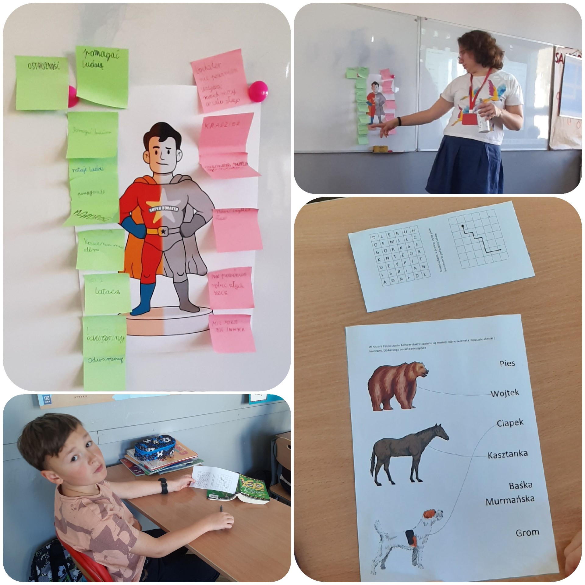 Dnia 31 października uczniowie klasy 3A i 3B wzięli udział w warsztatach historycznych. Czy bohaterem trzeba się urodzić? A może wystarczy mieć dobre serce, odwagę i chęć pomagania innym? Na te pytania uczniowie otrzymali odpowiedzi poznając trzy niezwykłe postacie z polskiej historii: Simonę Kossak, która kochała przyrodę i ratowała zwierzęta, pianistę Artura Rubinsteina, łodzianina, który pomimo światowego sukcesu nie zapomniał o swojej polskości oraz misia Wojtka, bohatera szkolnej lektury, który służył w stopniu kaprala w armii generała Andersa.