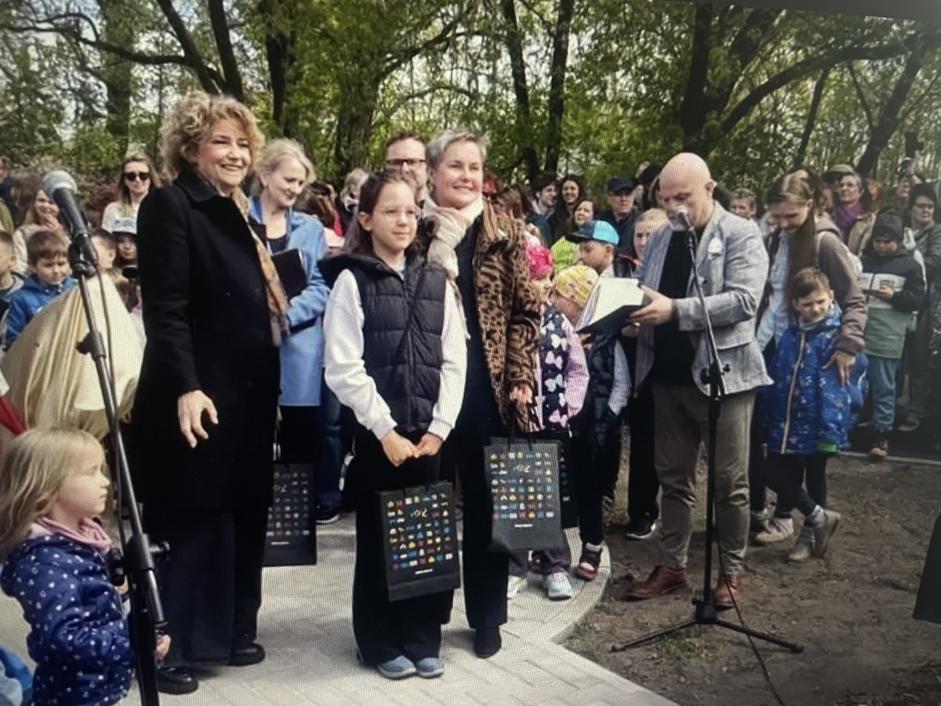 Oliwia Mirkowska z klasy 2c, natomiast wyróżnienia zdobyły: Marysia Łuczak z klasy 3d oraz Inka Arnold z klasy 1b. Uroczystego odsłonięcia rzeźby Muminka dokonała Ambasador Finlandii w Polsce Päivi Laine i prezydent ŁodziHanna Zdanowska. Wszystkie prace zostały przygotowane podczas zajęć na Małym Kółku Plastycznym w świetlicy szkolnej.
